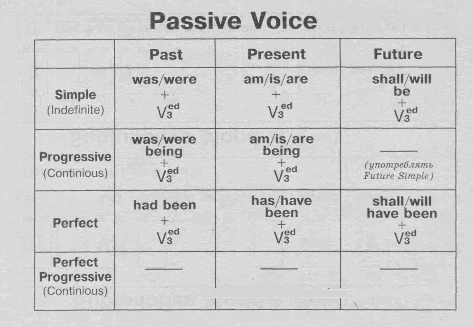 Samouchitel Tablici Za Vsichki Formi Na Stradatelen Zalog Passive Voice